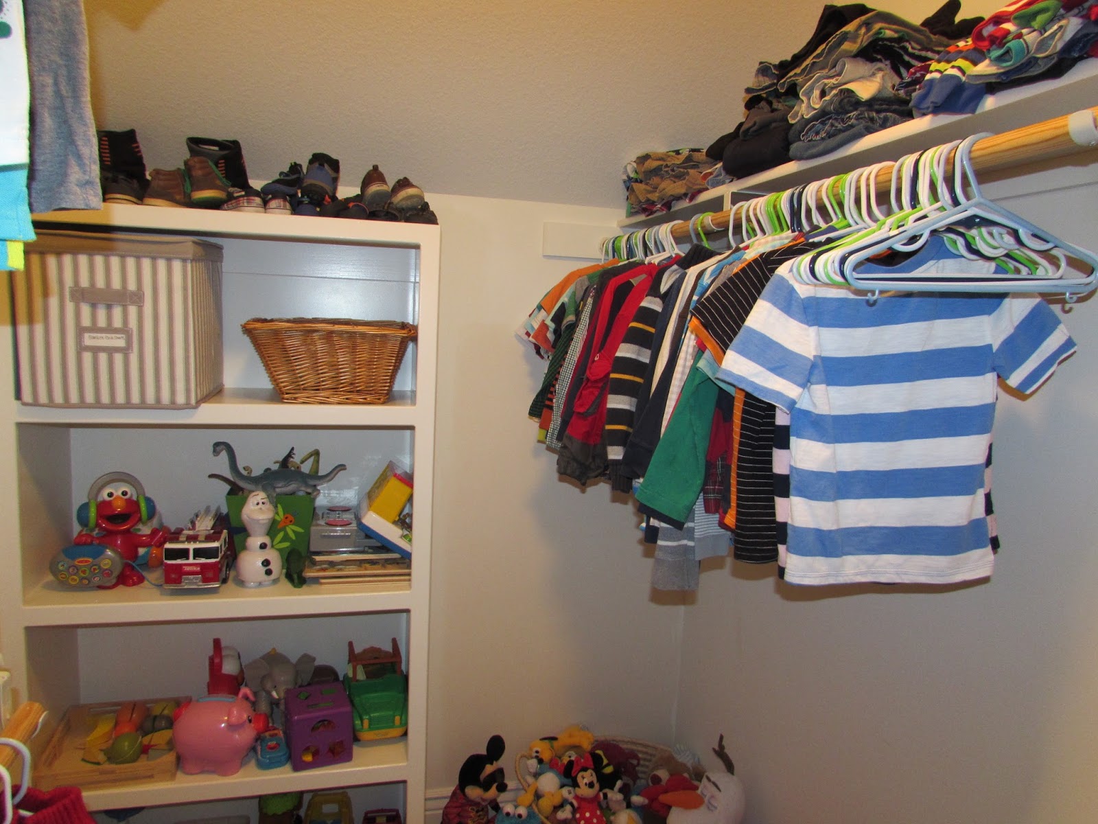 His room looks awesome!! And I'm super jealous of his closet!!! Ha! Love the book shelves and the little gallery wall. Nice work!