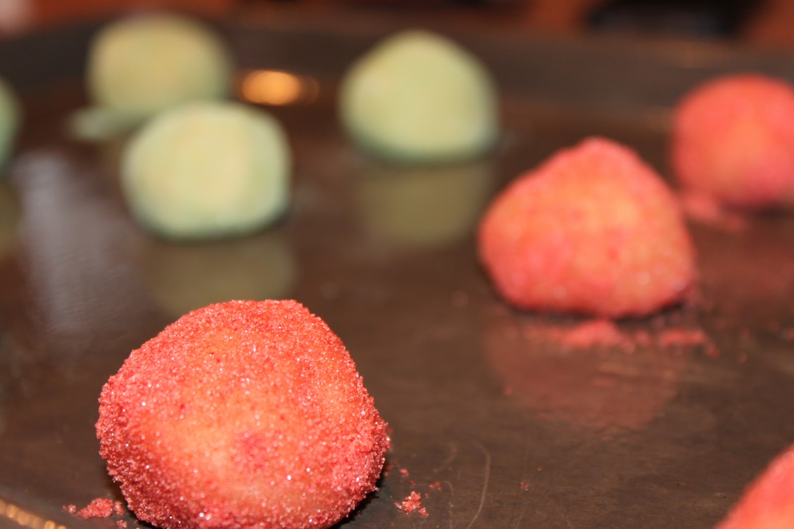 6. Roll dough into 1 inch balls and then roll in colored sugar.