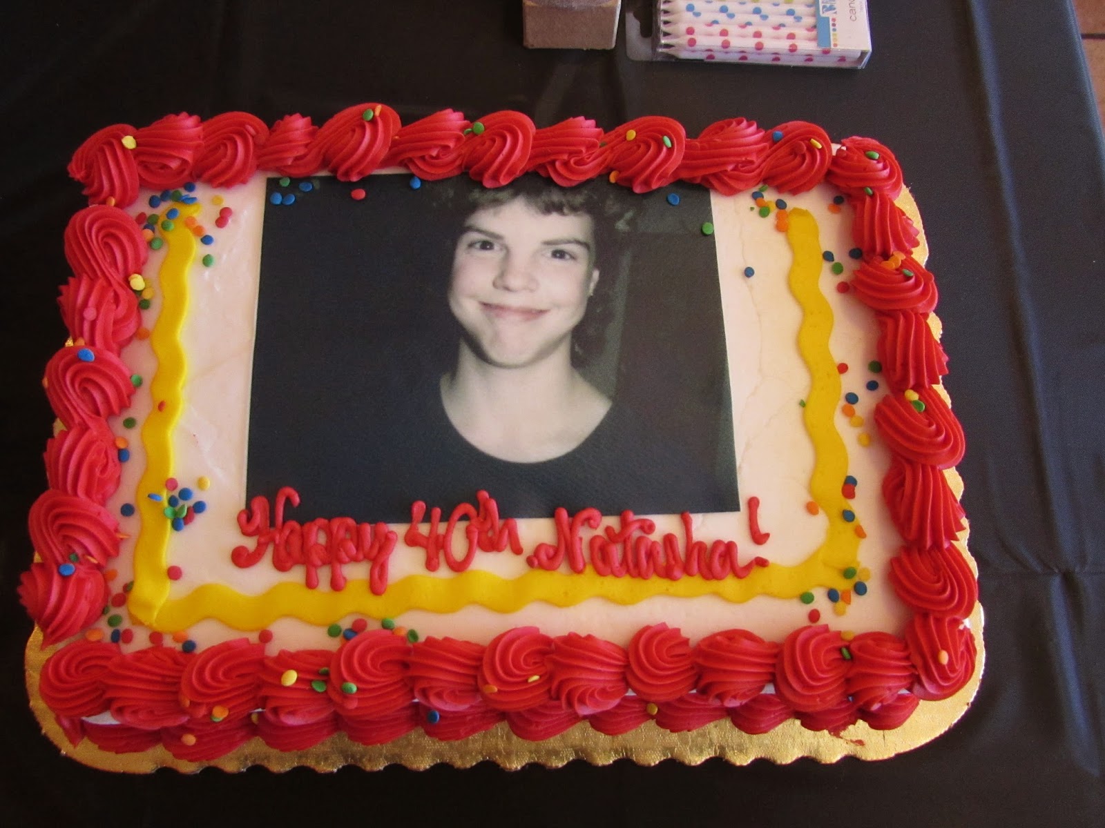 I kept the party pretty simple so there wasn’t too much prep. I made the easiest party favors, mod-podged some pictures on the number 40, and ordered a cake with my a picture of my then 13 year old sister’s face on it.