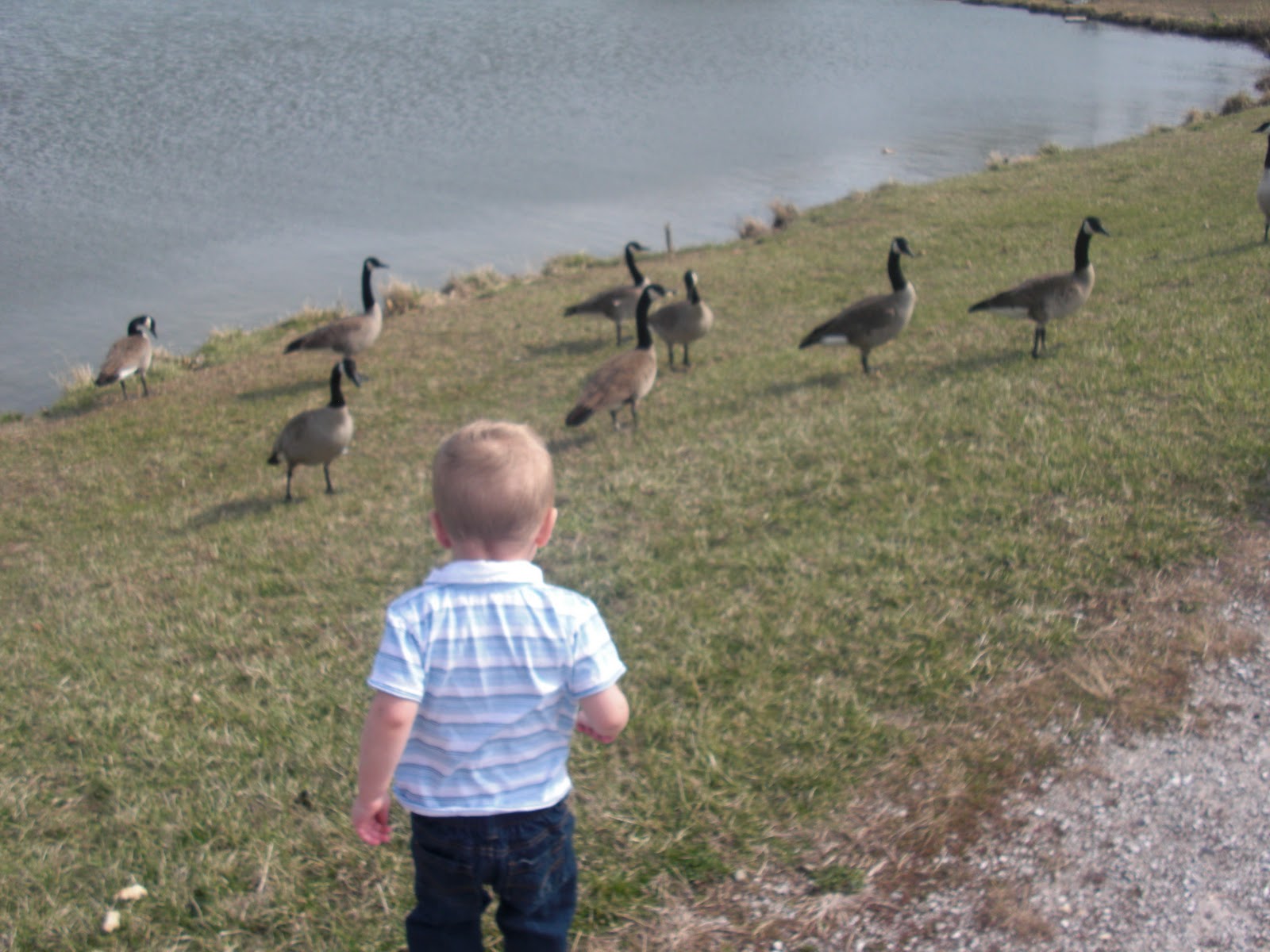 After the movie we headed to the park with my parents to feed some of the geese. Or shall I say the geese chased us until we threw them our bread.