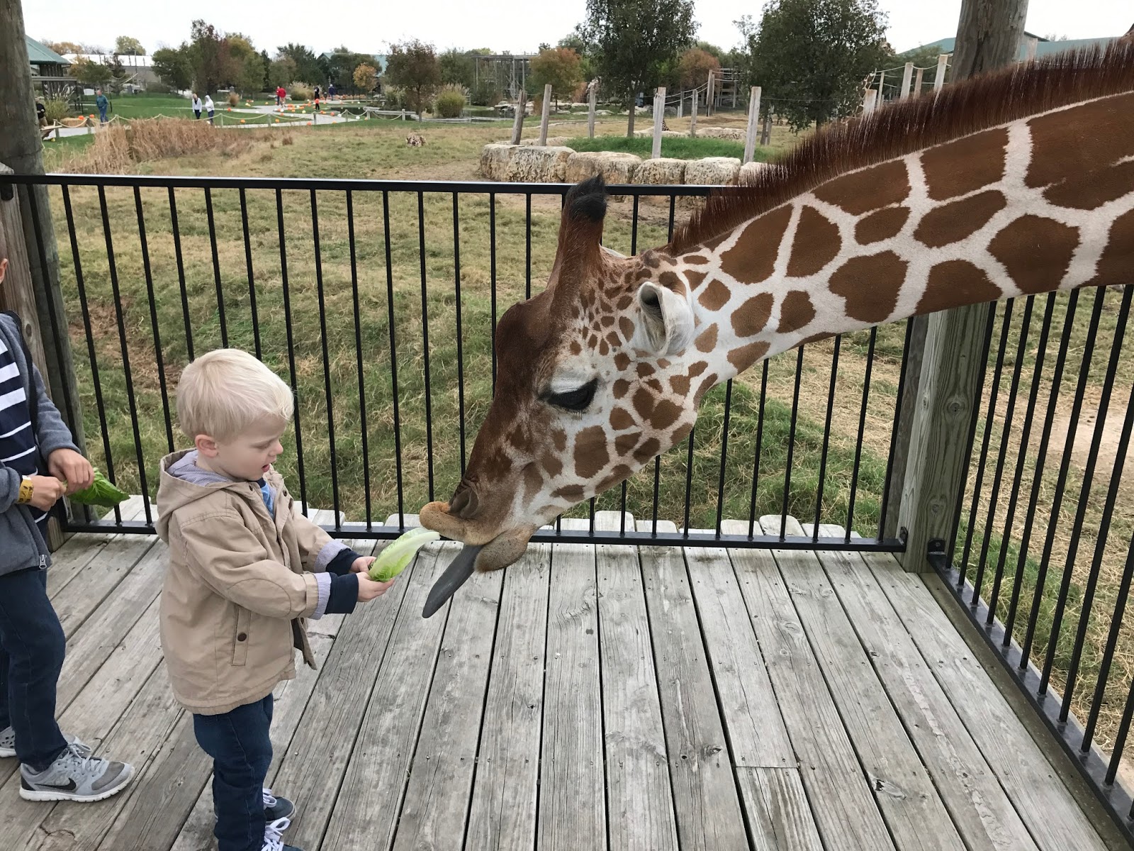 Tanganyika is privately funded and does not receive government subsidies and therefore costs more than a typical zoo. In addition to the admission fee, the interactive exhibits are extra but totally worth it and the main reason we came to this park. You can purchase individual tokens or a wristband in order to interact/feed some of the animals. We ended up buying the VIP wristband and I’m so glad we did. It allowed us to do all of the interactive experiences at least once and gave us unlimited access to the Giraffes, Lorakeets, Kangaroo Walkabout, and the children’s area (bunnies, alpacas, turtles, etc). We went on the Sunday before Halloween and it wasn’t crowded at all which allowed us to have lots of time to interact with the animals. At one point we were the only ones at the Giraffe lookout and must have feed them 3 heads of lettuce, once piece at a time.