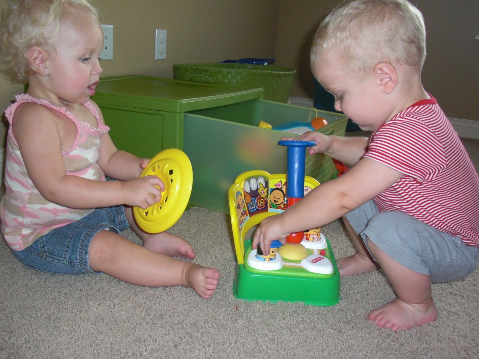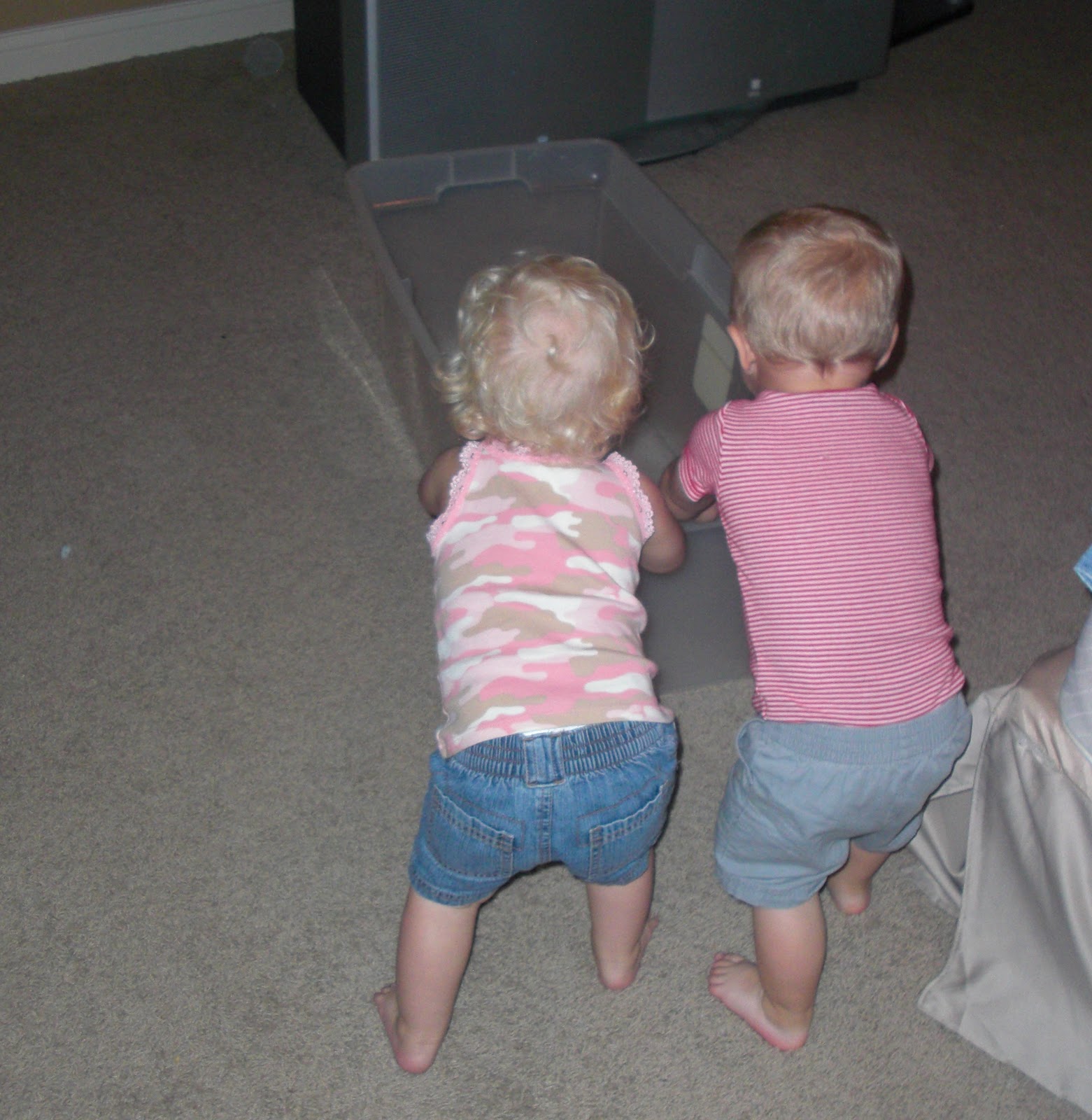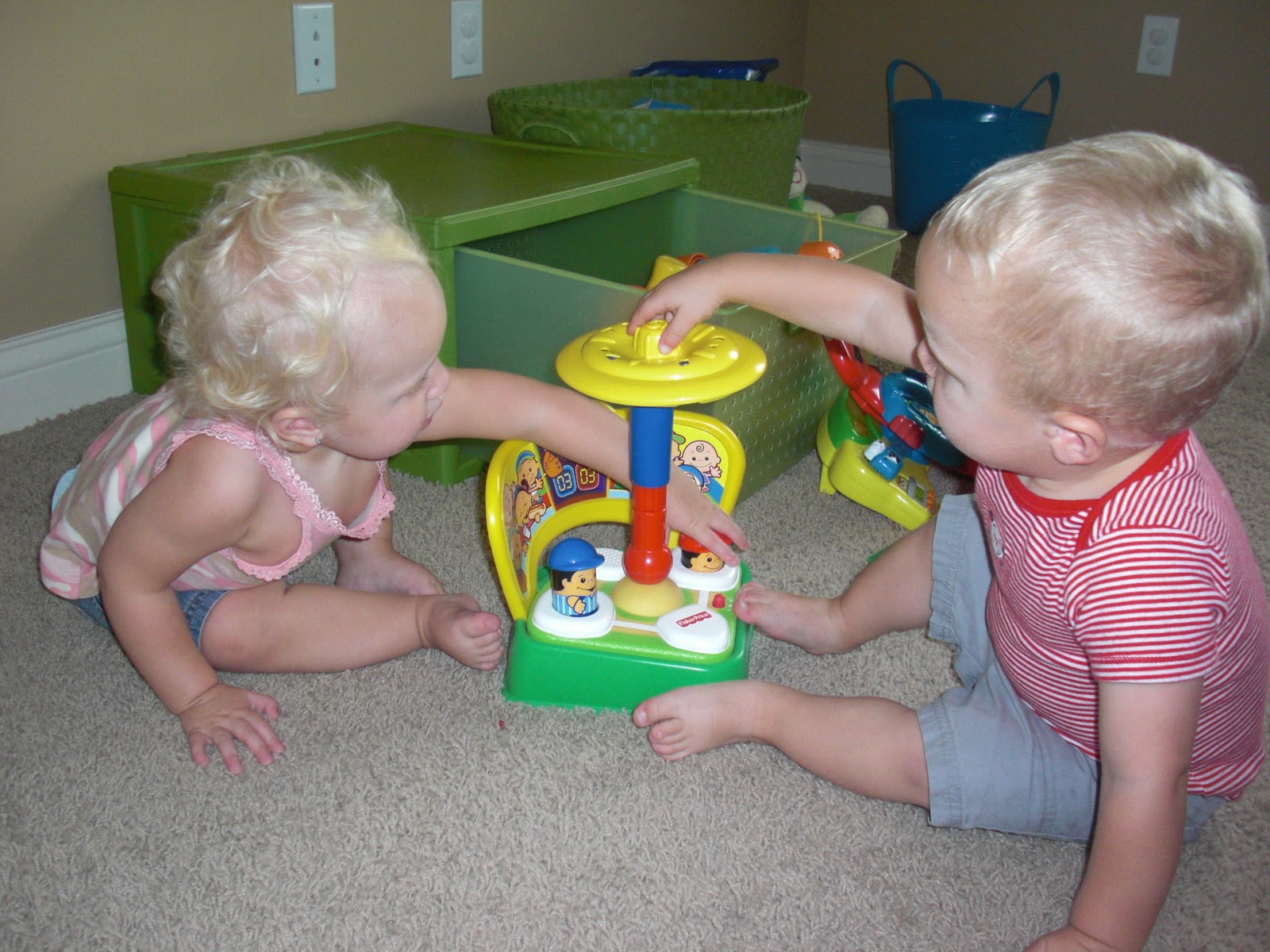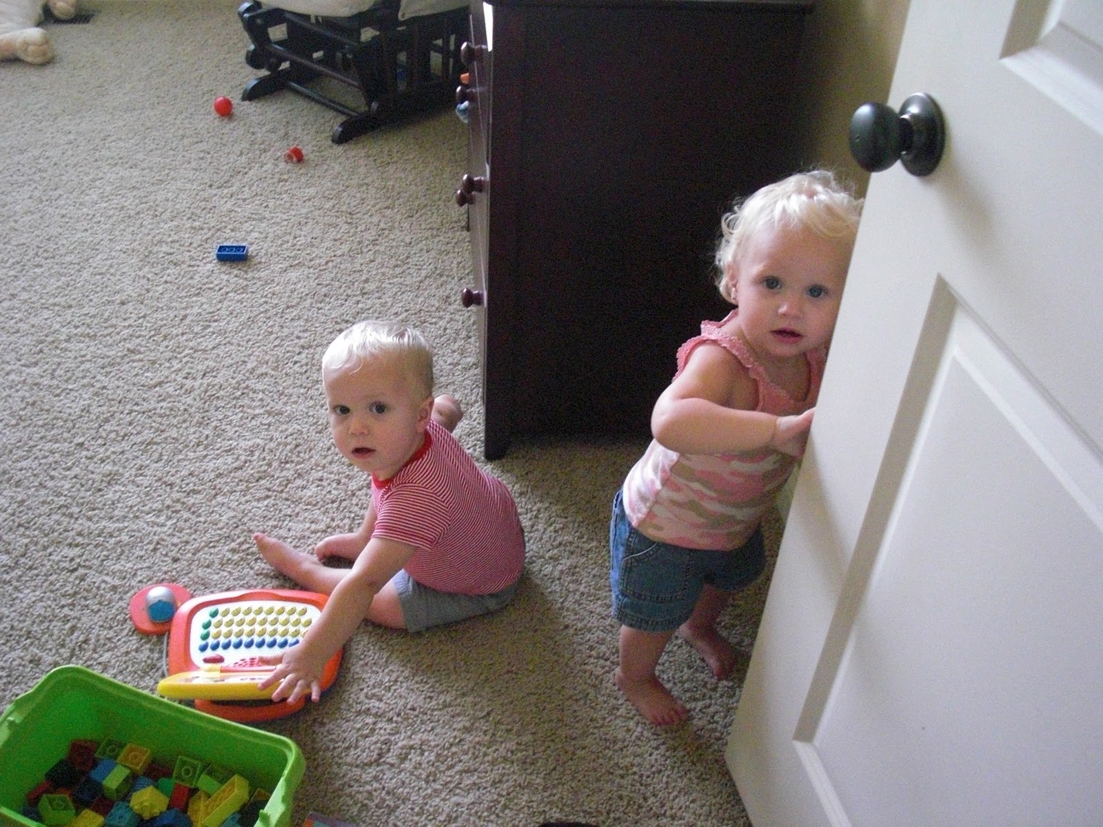 Today J and I got the chance to see just what life would be like with another child. J’s cousin is moving about an hour away so while she and her husband moved we volunteered to watch her two little girls. Mallory is 4 and Kylie is 13 months and they are the cutest, sweetest, and most well behaved children. Mallory ended up not staying with us since she had been feeling sick the day before so it was just Kylie and Ben. Although they’ve played together many times at different family things, this was the first time they hung out just one on one.