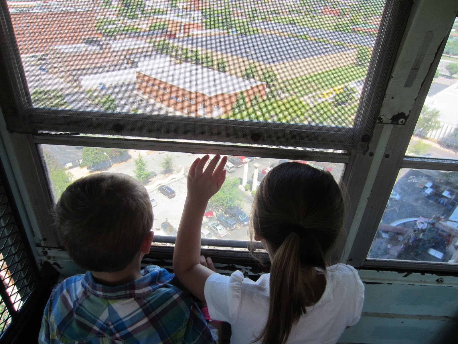 Sunday we checked out of our hotel and headed to the City Museum. We paid to park at a lot near the museum and then spent the day playing and having lots of fun. When it was time to leave we walked back to the lot and I went to put Jack in the car and noticed broken glass on the ground. My first thought was to ask my dad if he knew he parked on a bunch of broken glass. As soon as those words came out of my mouth, I noticed the broken window.