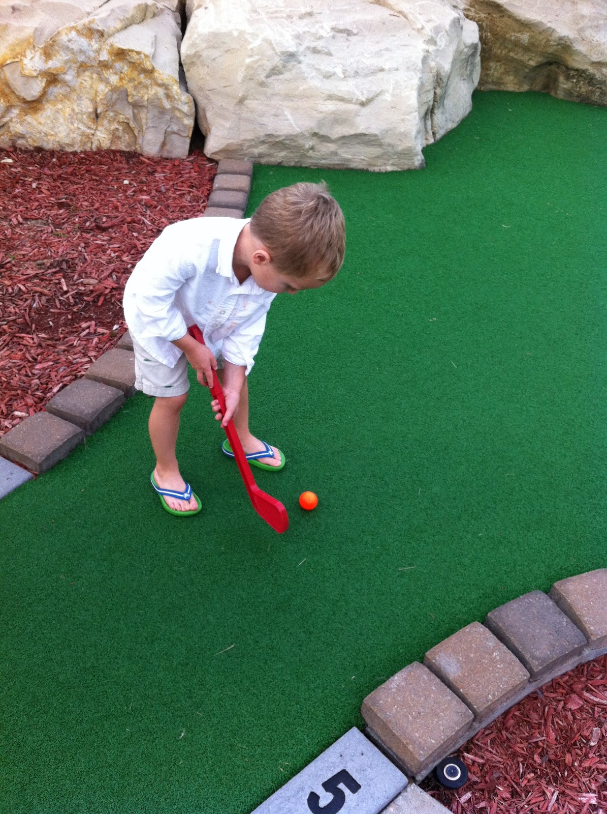 After SDC we got ready, went to dinner, and then played Ben’s first game of mini golf. I’m proud to report that mini golf went over much better than the roller coasters.