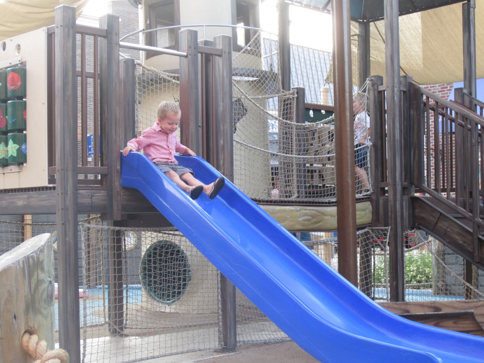 After swimming we got ready and went to the Branson Landing for dinner. The landing has shops, restaurants, and play areas for kids. It’s all outside, sits right on the river, and it’s pedestrian only so kids can run around.