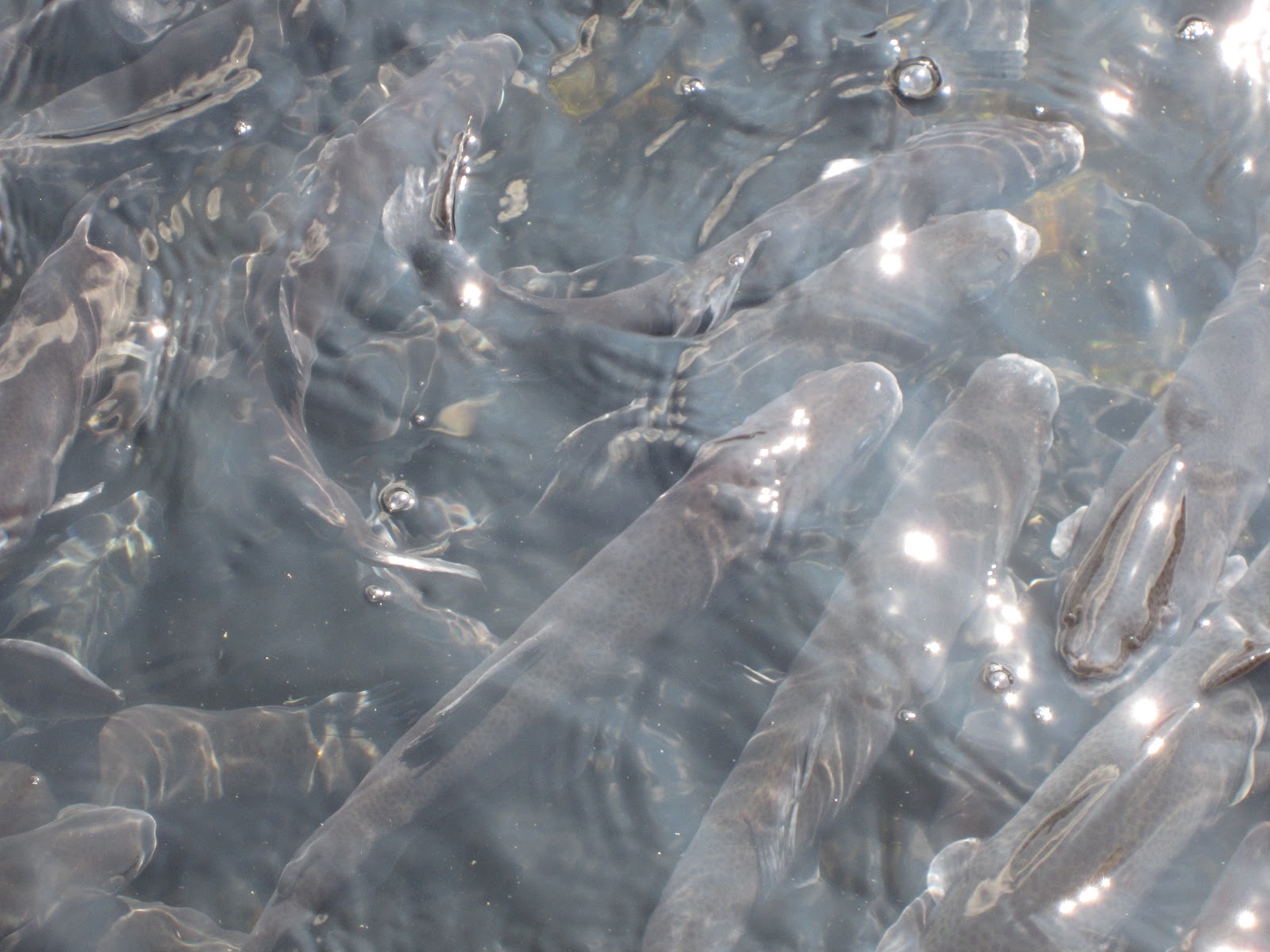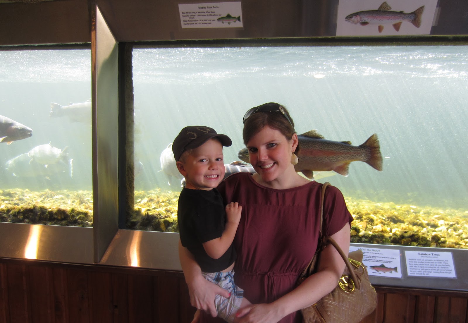 After the sugary donuts we headed to the fish hatchery. The hatchery grows thousands and thousands of trout and releases them into the river. Inside the hatchery were large aquariums.