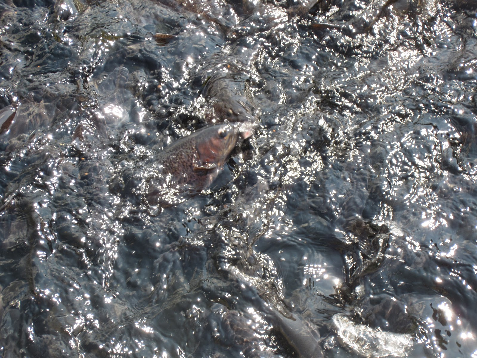 I have never seen so many small fish in such a close space before. They created quite a splash when food was thrown in.