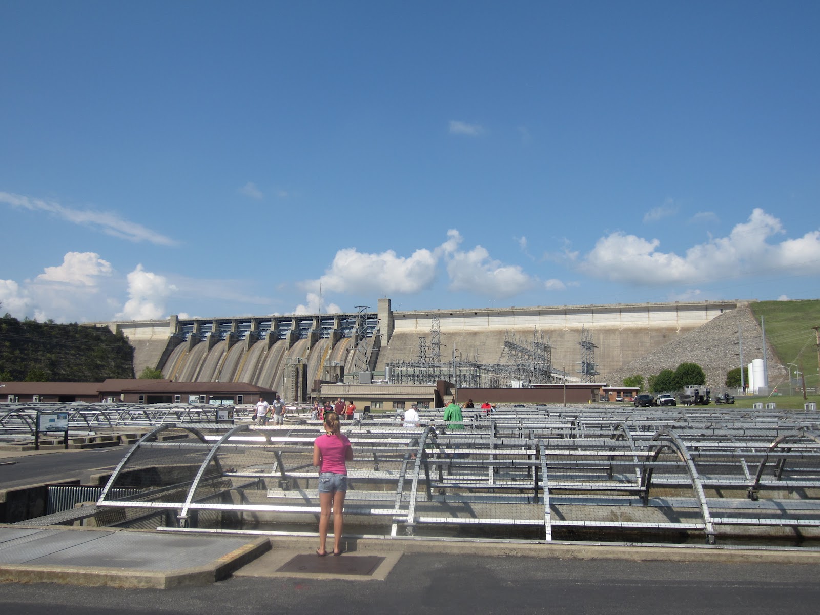 Outside were tanks full of fish you could feed. You can see the Dam in the background.