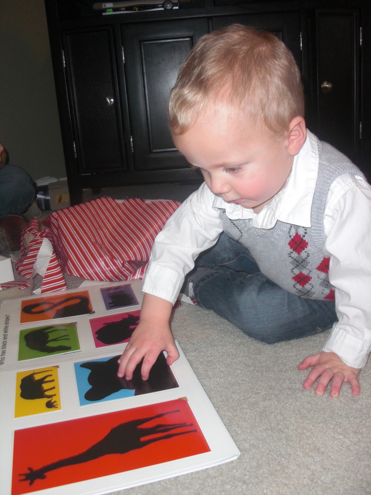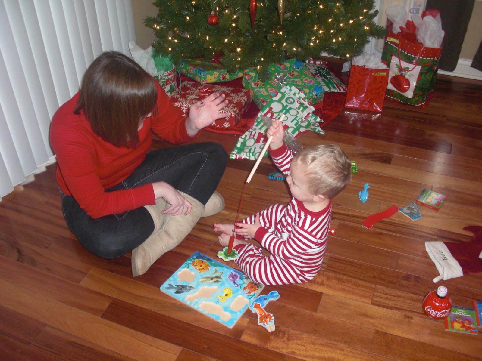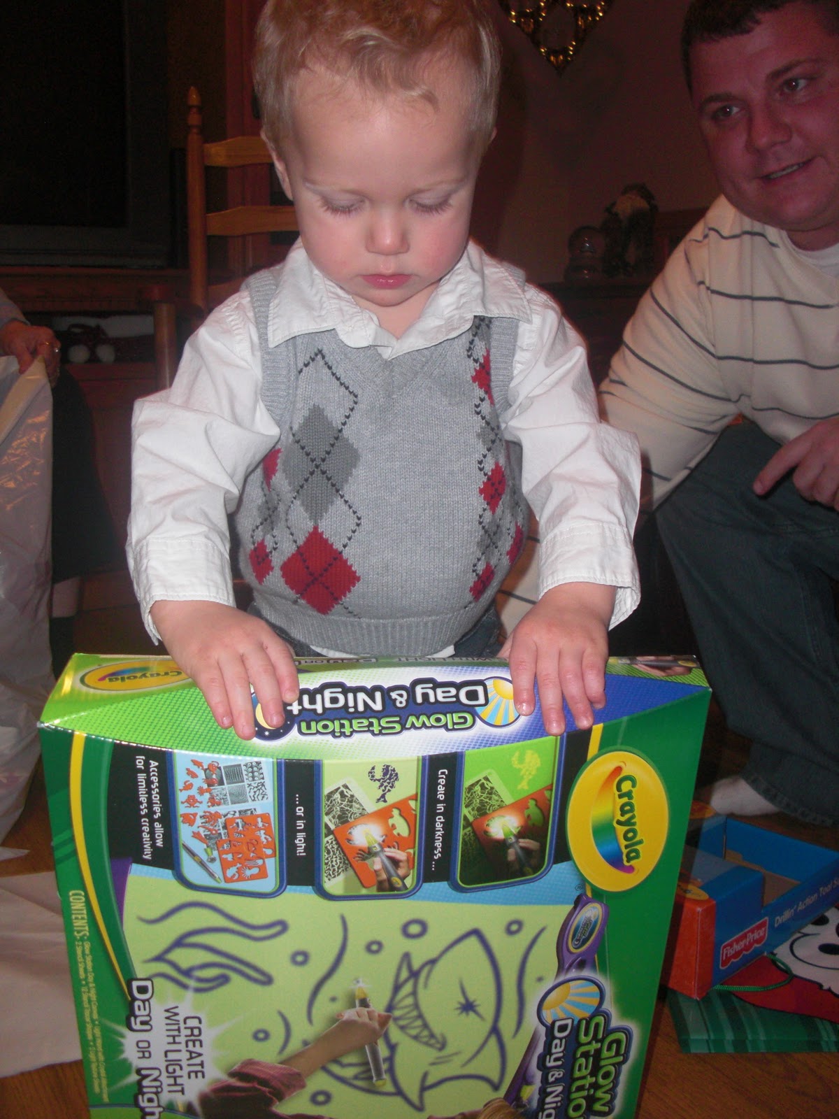 Ben was not too thrilled to be up early on Christmas morning, but his mood soon turned around when he saw all the presents that were left for him under the tree.