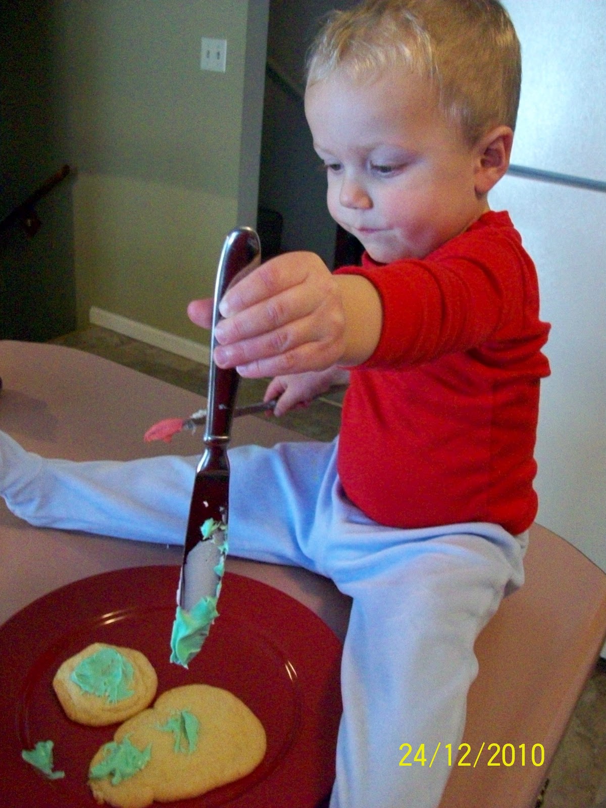 On Christmas Eve morning Ben and I went over to my parent’s house to eat breakfast and to bake Santa’s cookies. Since Ben was only 10 months old last Christmas, this was the first year we did this and he absolutely loved it.