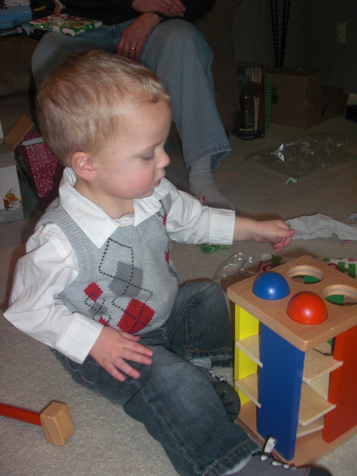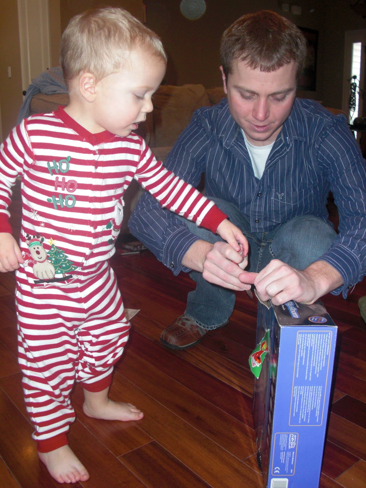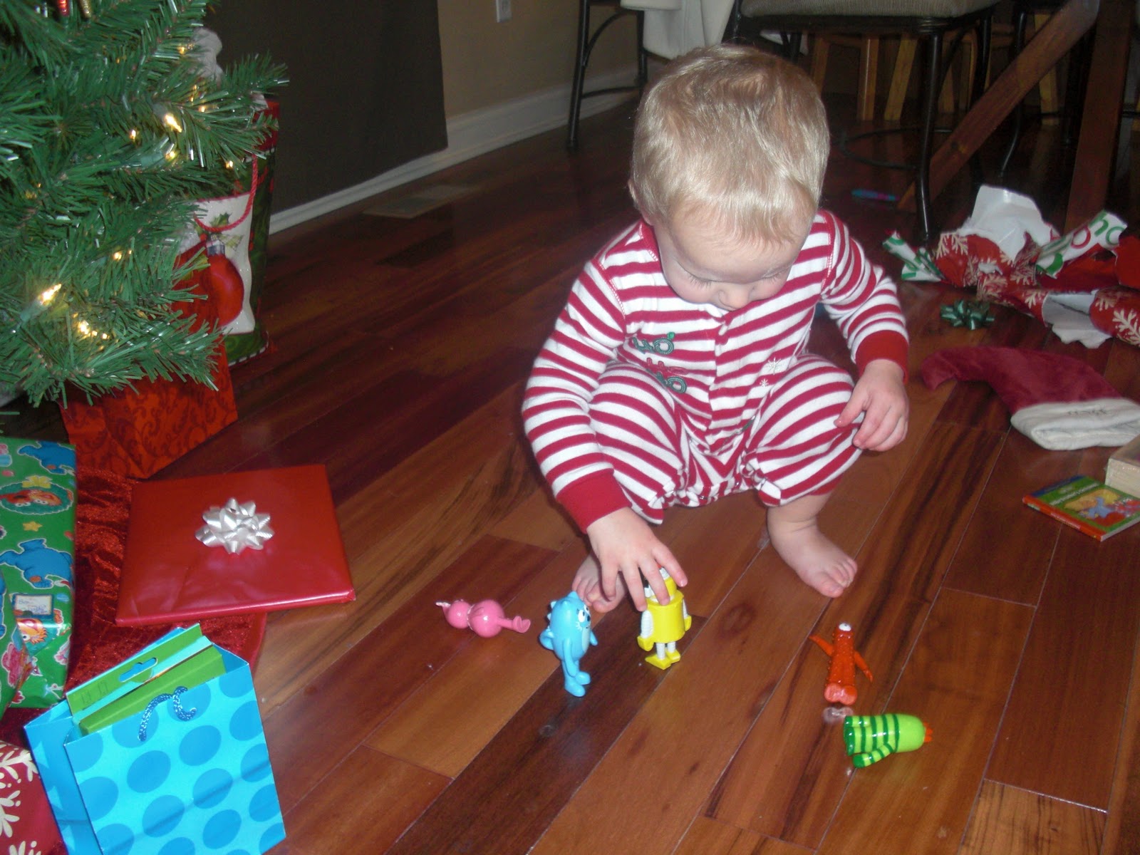 It was a late night at J’s parents and by the time we got on the road Ben was out. He was so tired he slept in until 8 the next morning and this is what we woke up to. And these are just from our parents. The things we got Ben were on the other side of the living room. So you guess what I did all today,