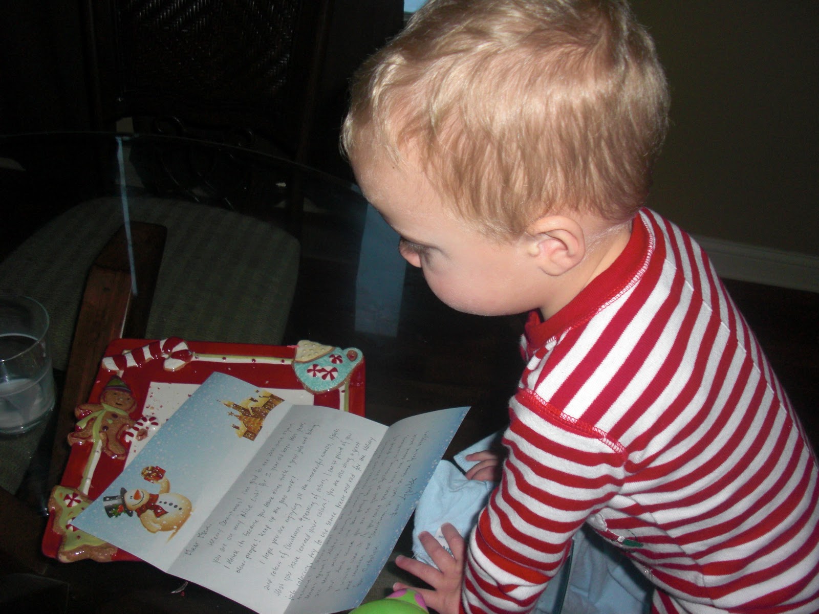 Reading his letter from Santa