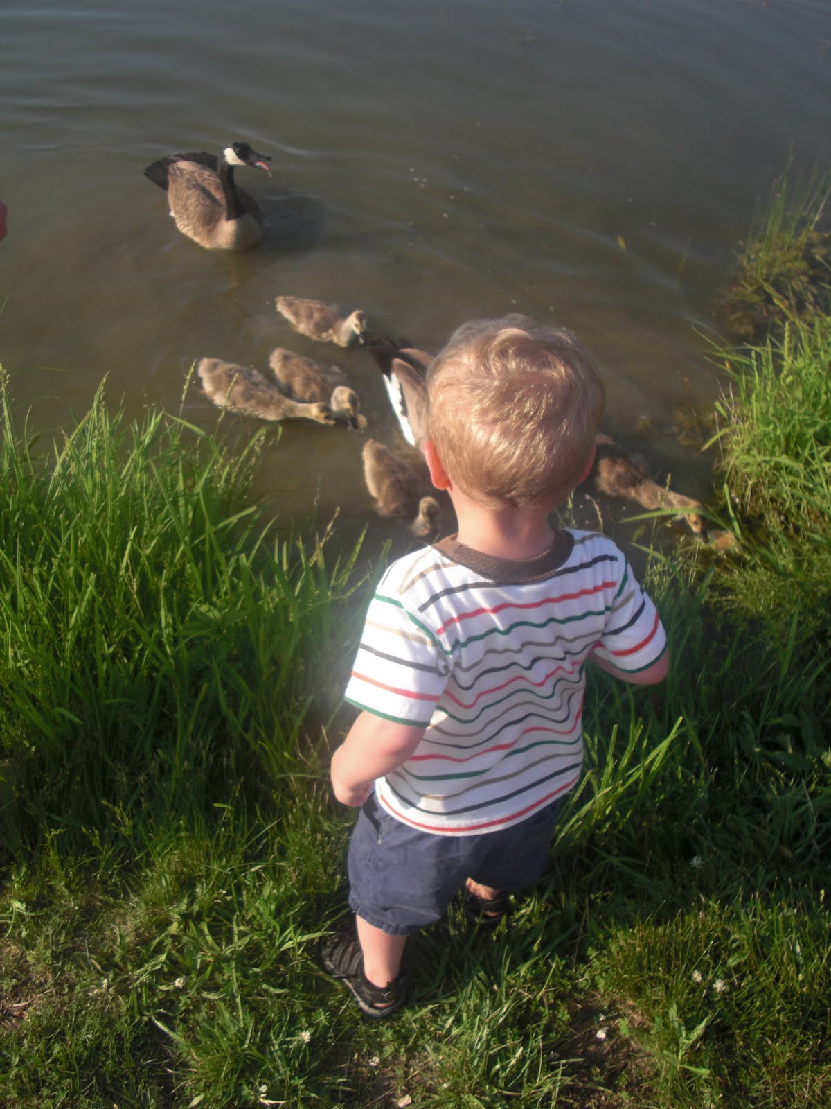 This picture is right before Ben took one step too close and his little foot slipped into the water. He was fine but I don’t think the momma goose was too pleased and quickly swam away.