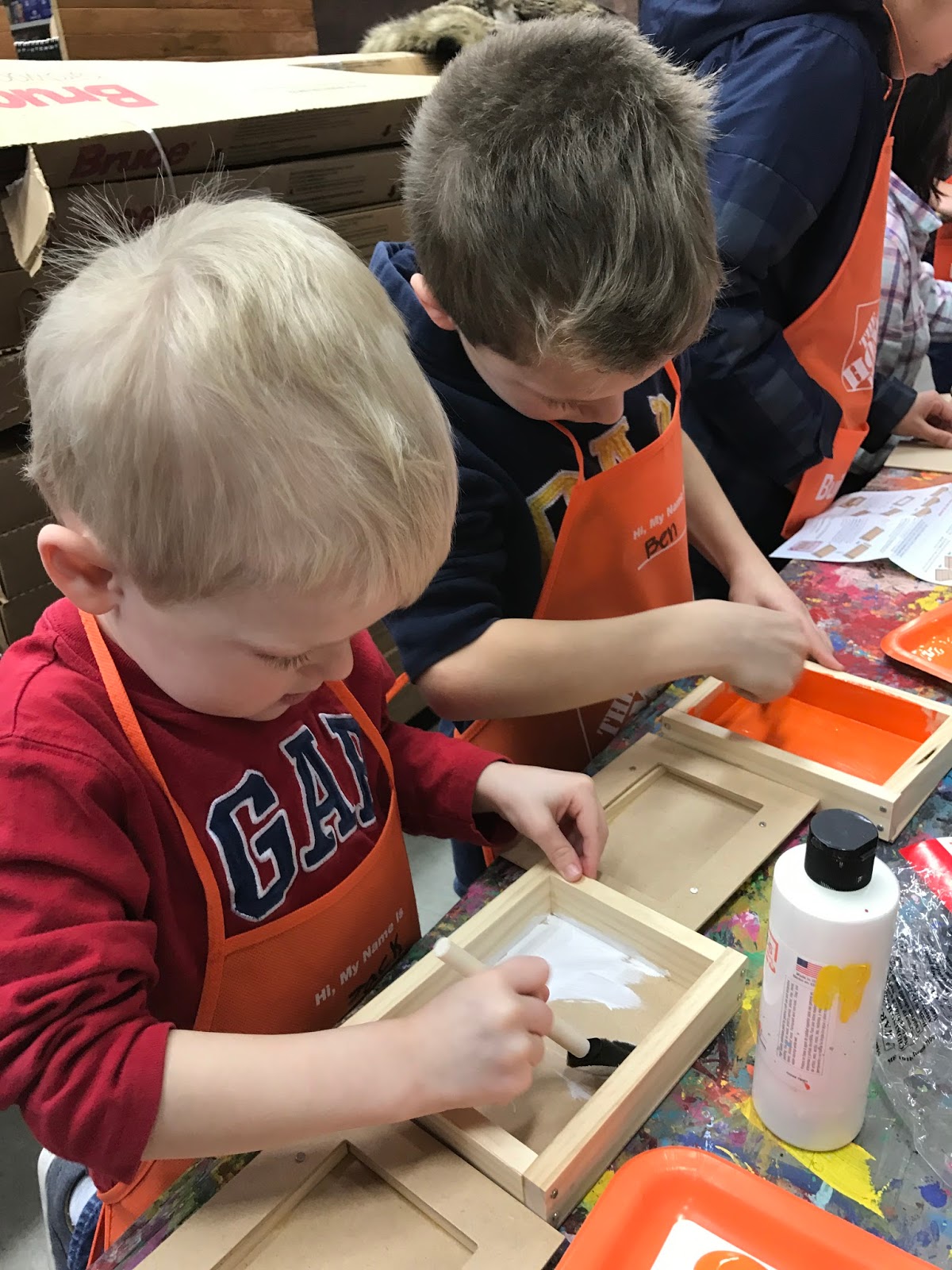 Saturday morning I took the boys to Home Depot for a kid’s building workshop. They built and painted Valentine Picture Boxes and I was so proud of Ben who pretty much built his box completely on his own. And only managed to hit his finger with the hammer once 🙂