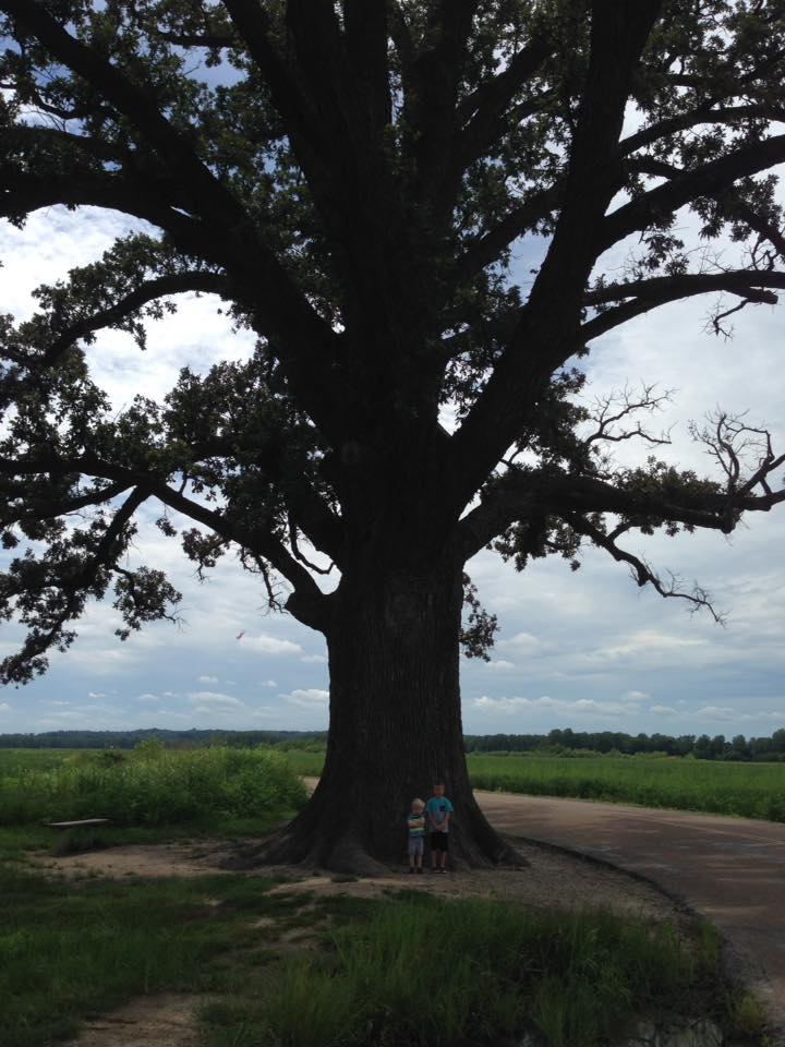 That afternoon the kids and I headed to The Big Tree, which is the largest Bur Oak tree in the United States as well as the largest tree in MO. The boys didn’t share my enthusiasm about how cool it was.