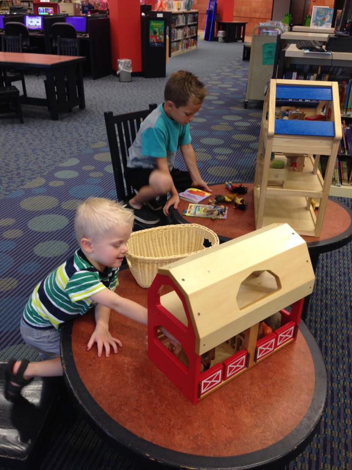 Lunch was followed by the library where we got to pick out some free books for completing the Summer Reading Program. Anyone else’s kids want to play on the computer and with the pretend kitchen instead of actually reading?