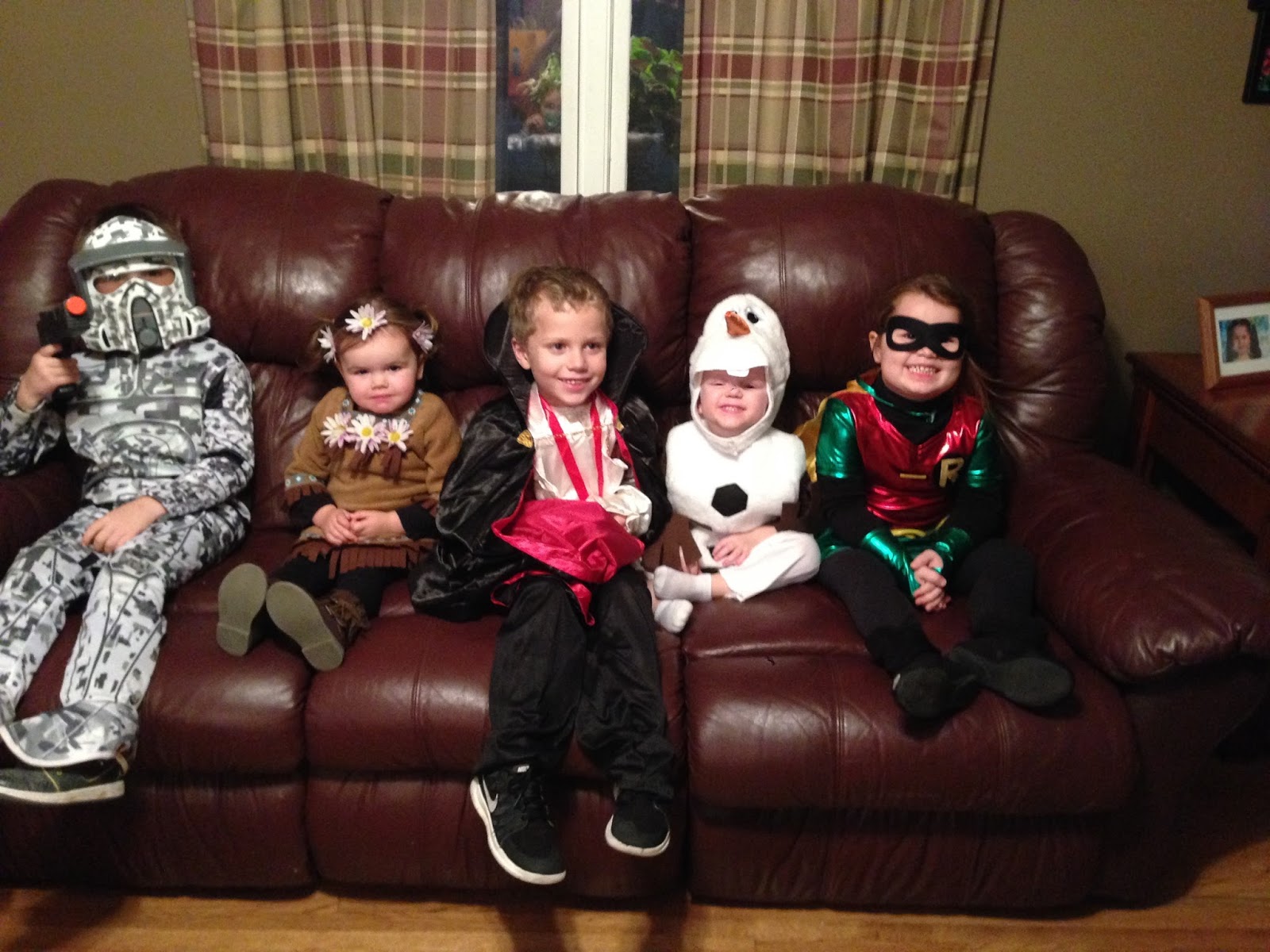 Sunday was spent thinking it was later than it actually was and getting all the costumes and candy put away. Between grandparents, great grandparents, and J’s aunt, the boys brought home so many buckets and bags filled to the brim.