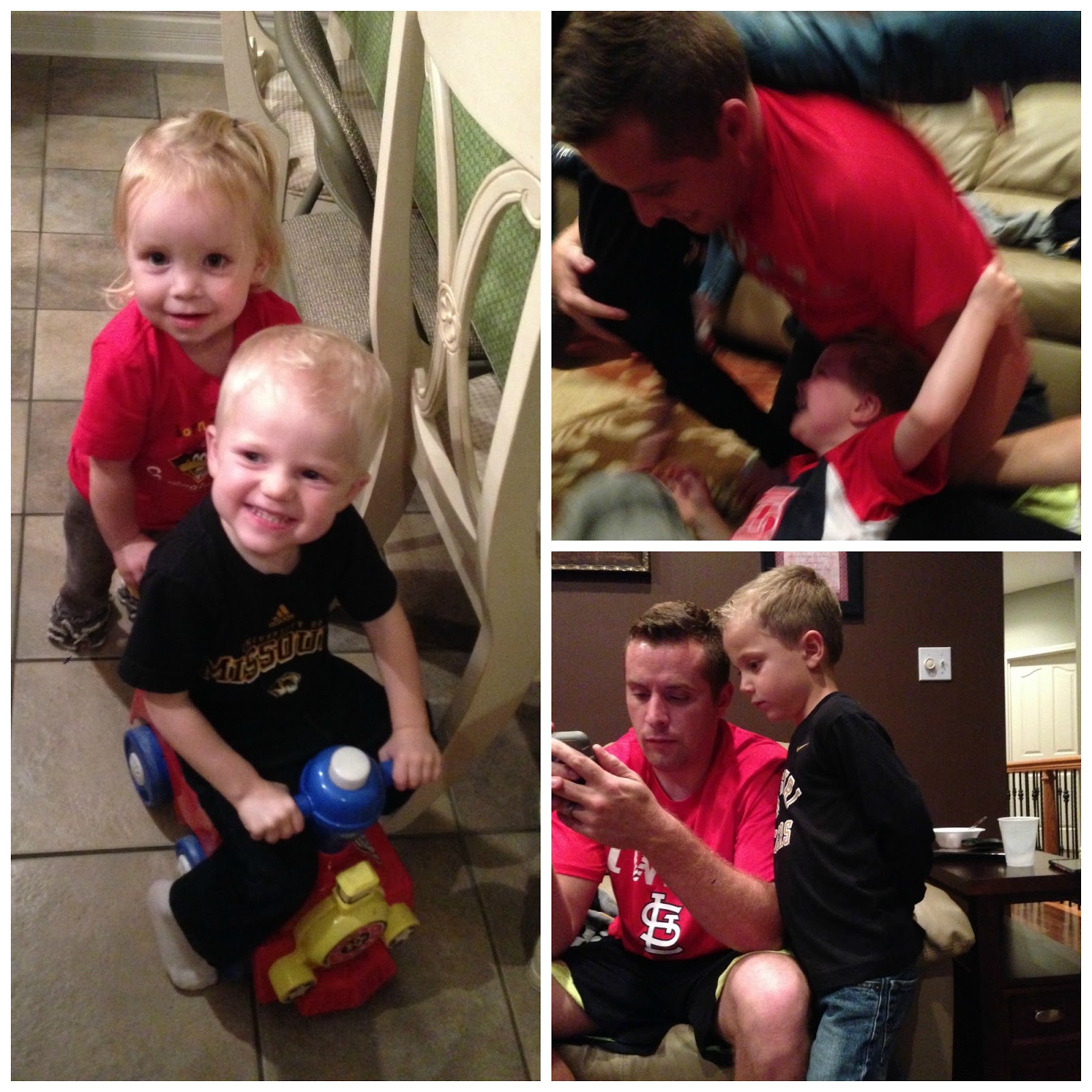 Friday night I hung out with my friend Meghan and her family. Ben loves Meghan’s husband and I think it has a lot to do with the fact that he wrestles and body slams him around, things mom won’t do.