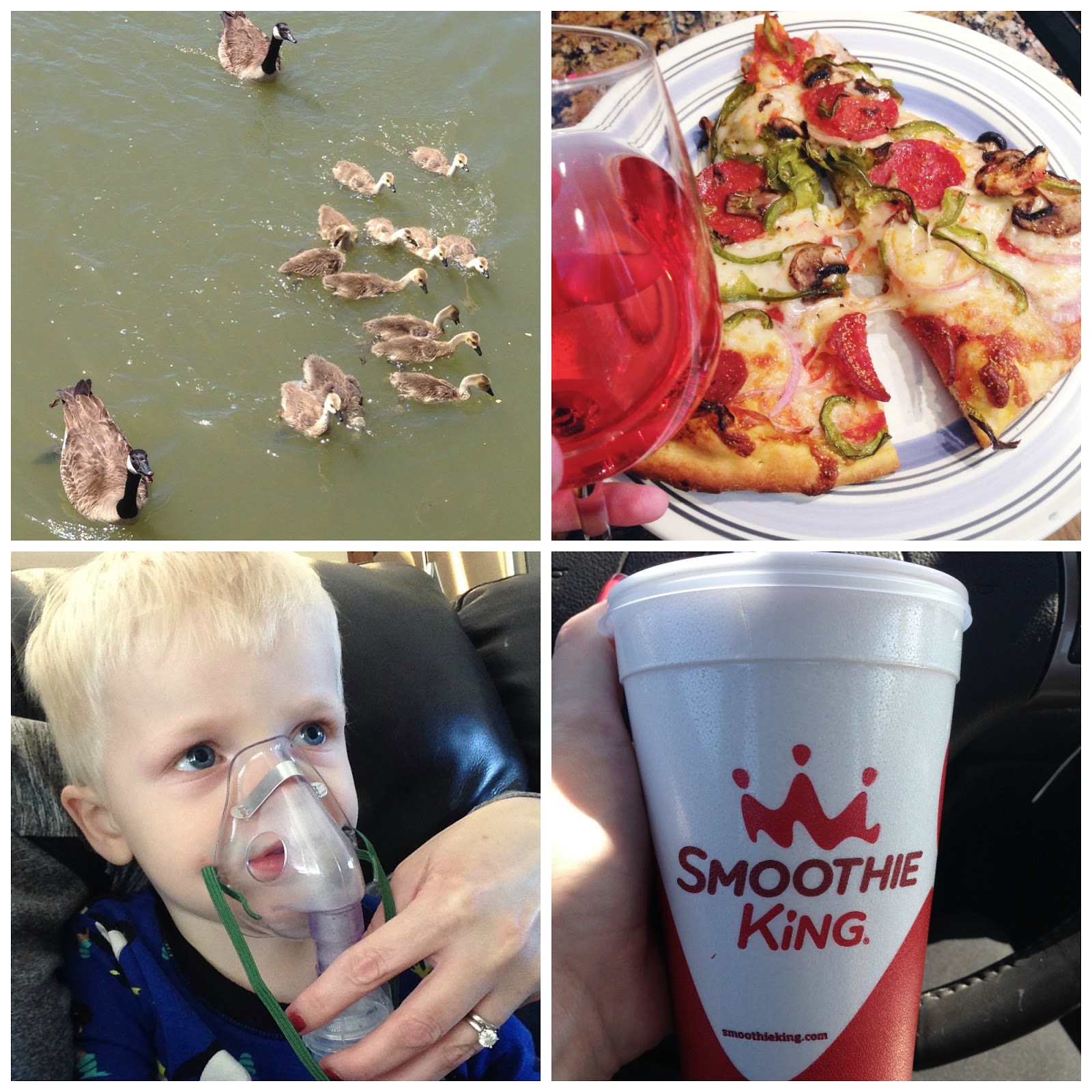 Our weekend didn’t go quite as planned when Jack got diagnosed with pneumonia Sunday morning after a 4 hour trip to Urgent Care. Before the face masks and antibiotics there was geese feeding, Rose drinking and pizza eating. We rounded out the weekend with Smoothie King and bonus, the kids don’t know they hide fruits and vegetables in their smoothies and I’m definitely not telling them.
