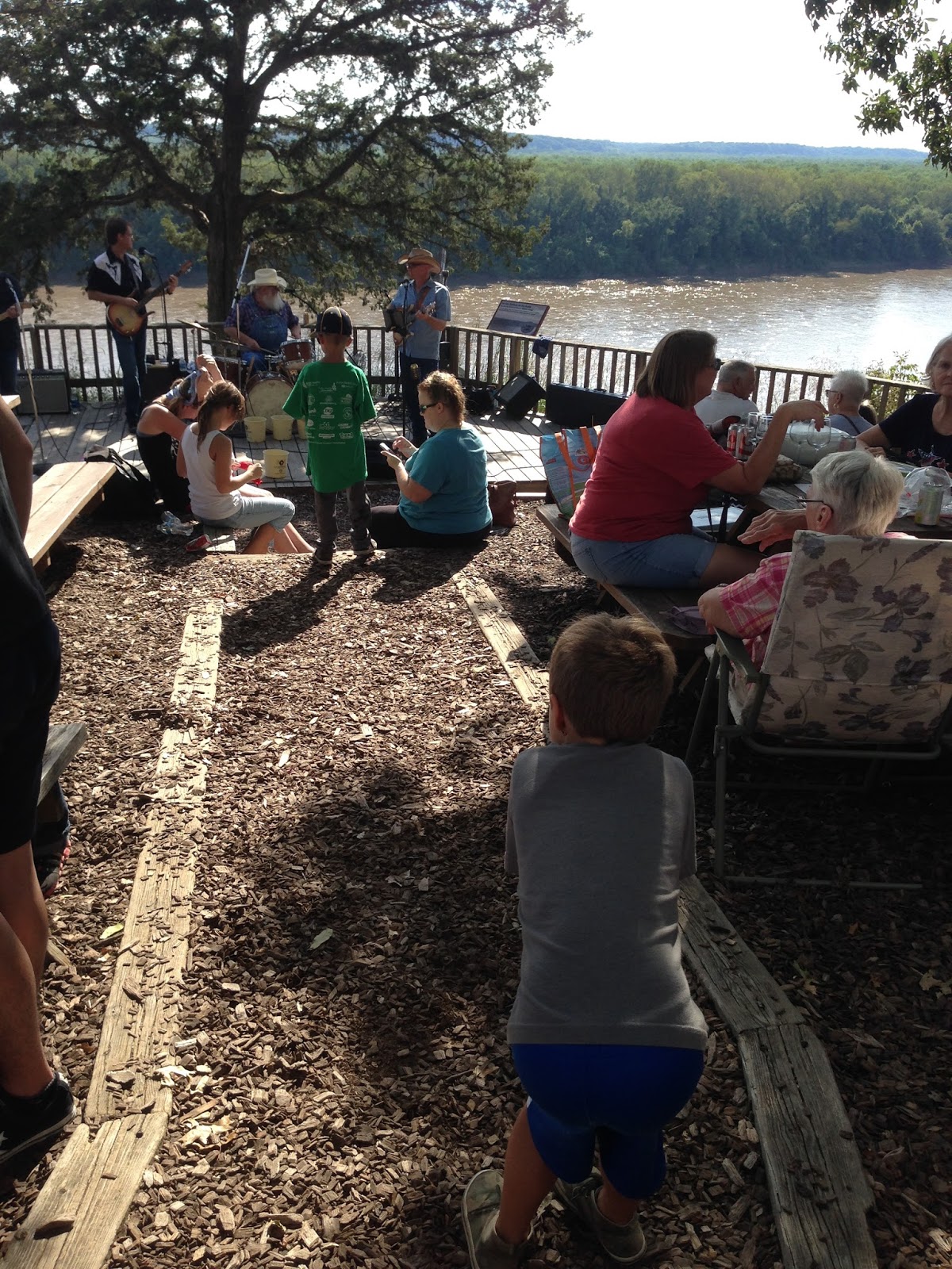 The weather was beautiful so we grabbed a glass of wine for me, and grape juice for the kids and sat and listened to the live band while taking in views of the Missouri river.