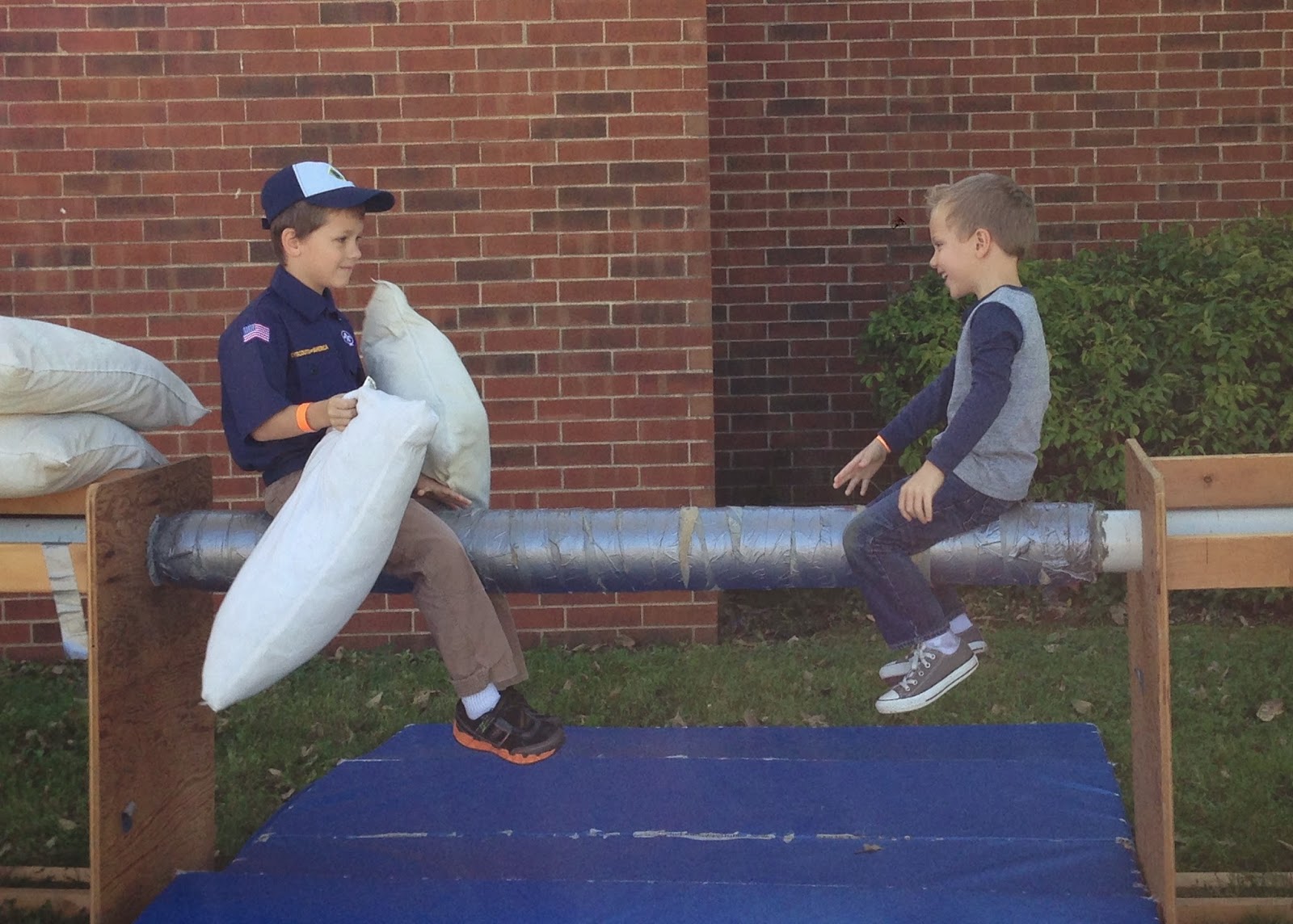 Ben did pillow jousting with a fellow school mate.