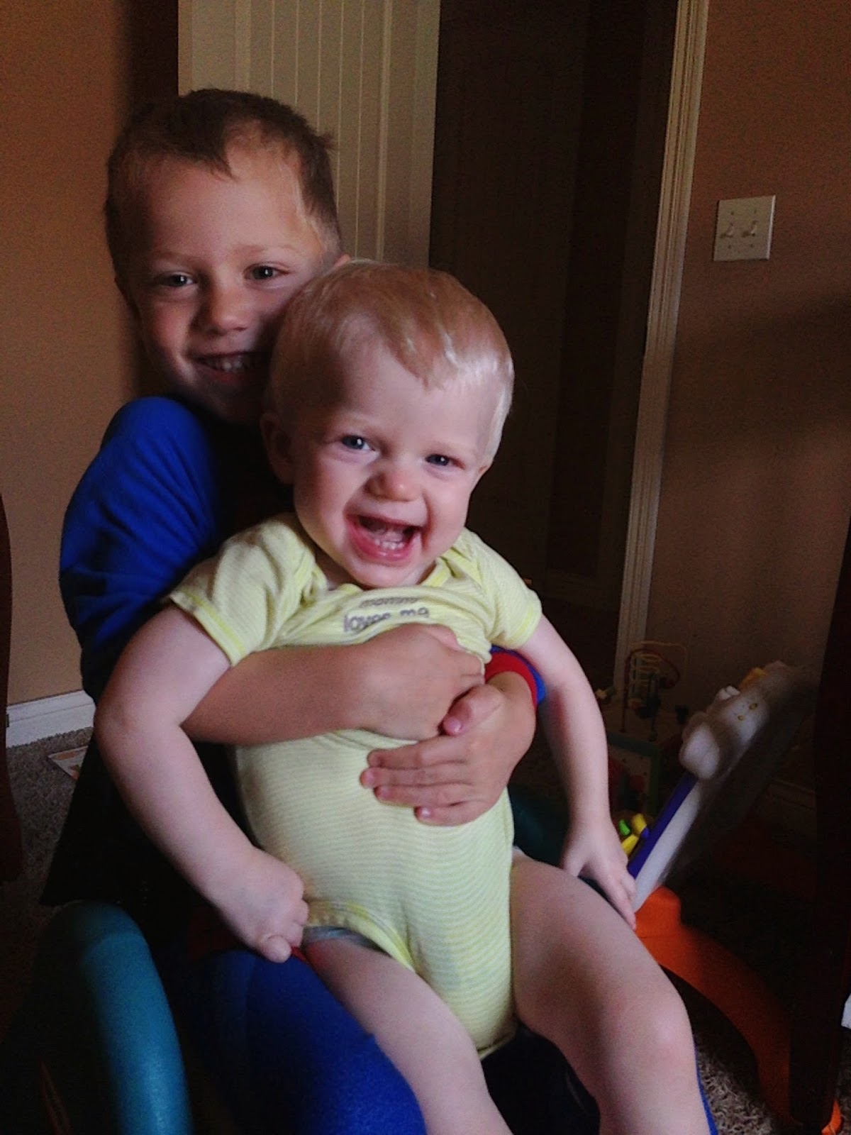 Jack is really into copying anything his brother does. It’s cute when they’re playing cars, not so cute when they’re trying to leap off the couch.