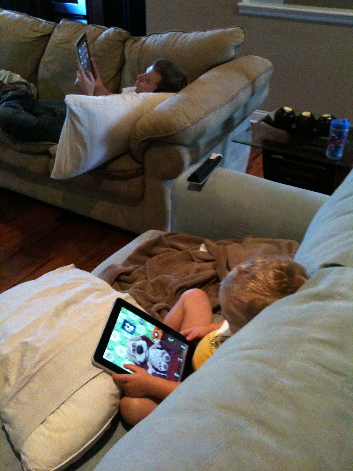 Our plans to get ice cream were quickly ruined when thunderstorms rolled through town but these two didn’t seem to mind. Like father like son.