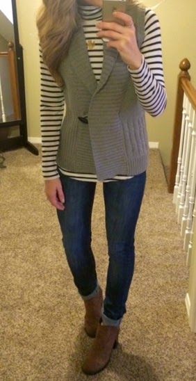 I love that vest….but I also love the boots that she's wearing too! So many great ideas 🙂